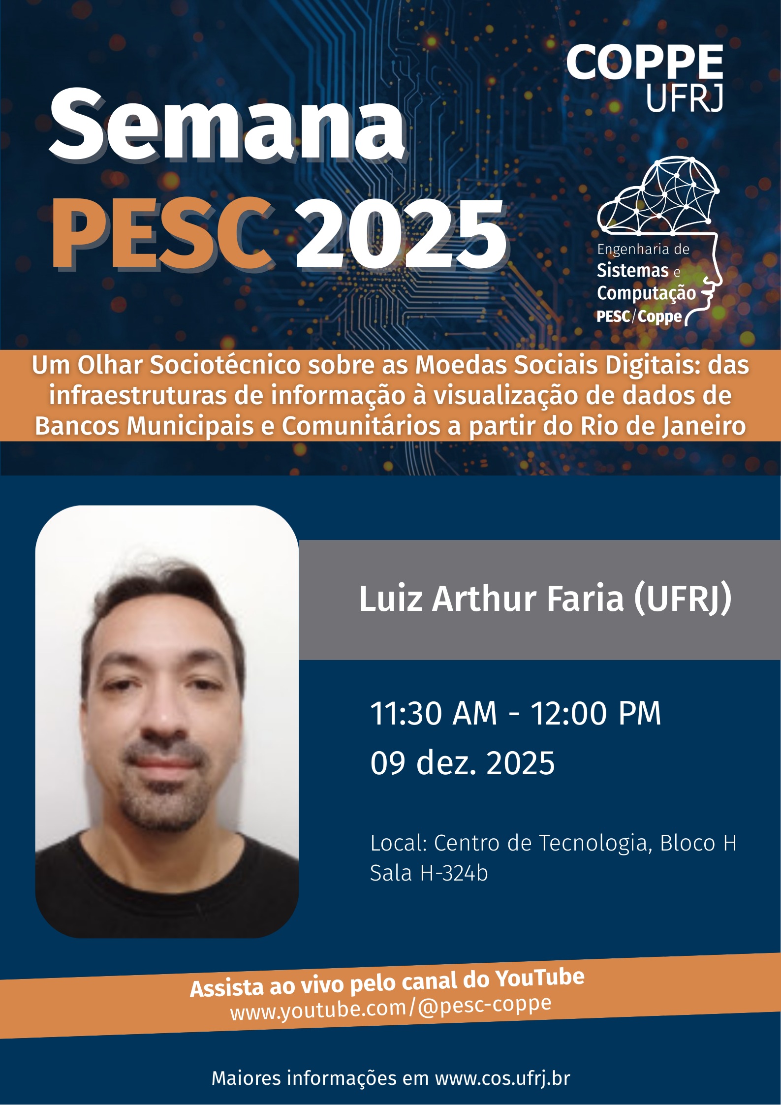 11:30 - (JCNE 2025) Luiz Arthur Silva de Faria (Programa de Engenharia de Sistemas e Computação) – Um Olhar Sociotécnico sobre as Moedas Sociais Digitais: das infraestruturas de informação à visualização de dados de Bancos Municipais e Comunitários a partir do Rio de Janeiro