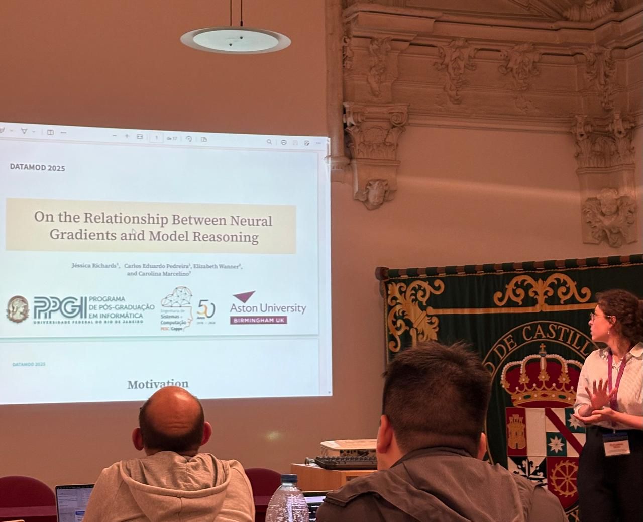 Jéssica Richards Nascimento (aluna de doutorado do PESC) apresentou essa semana o trabalho 'On Relationship Between Neural Gradients and Model Reasoning' no DATAMOD 2025: FROM DATA TO MODELS AND BACK em Toledo na Espanha.