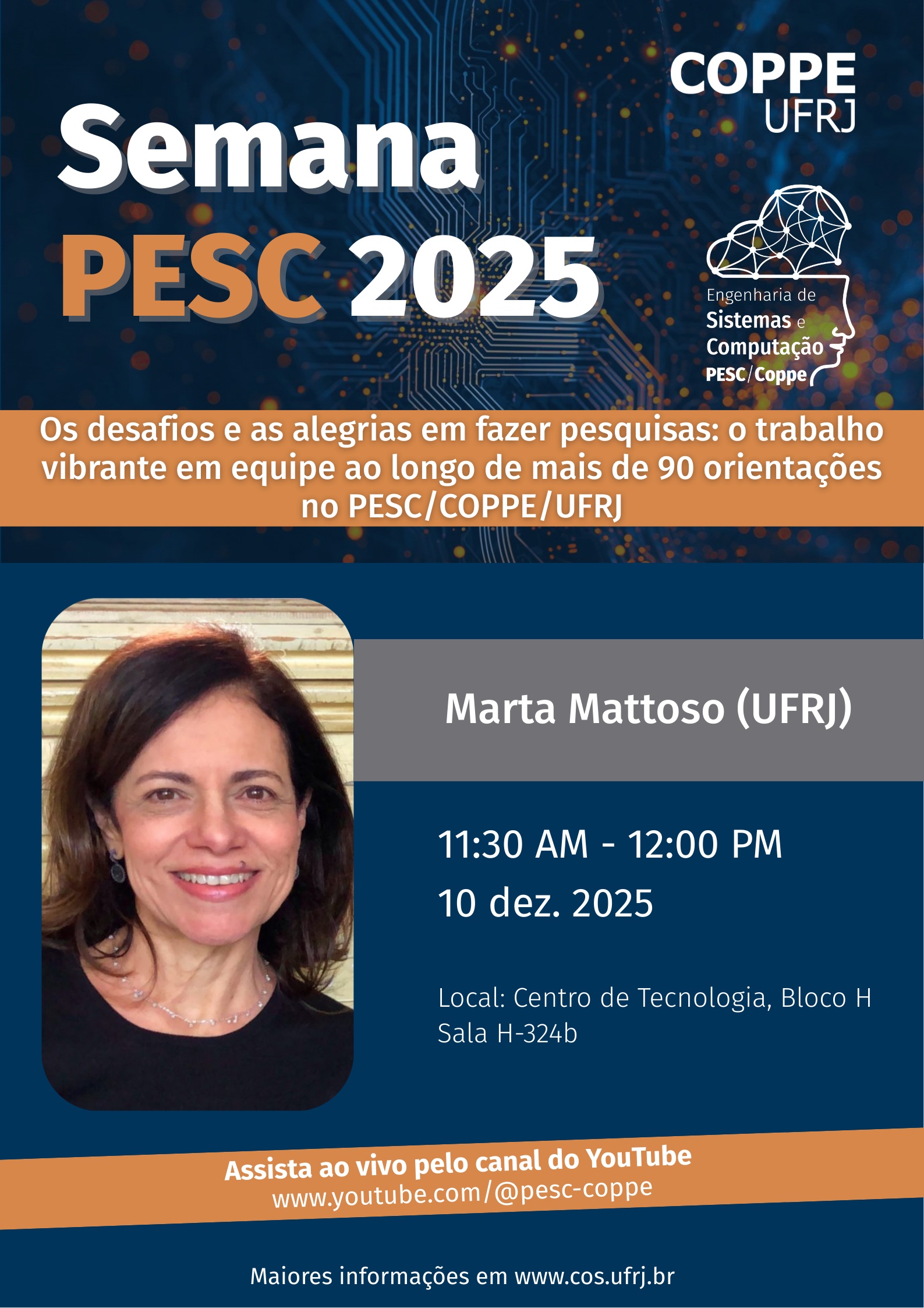 11:30 - Marta Mattoso (Programa de Engenharia de Sistemas e Computação) - Prêmio SBC e projetos de pesquisa