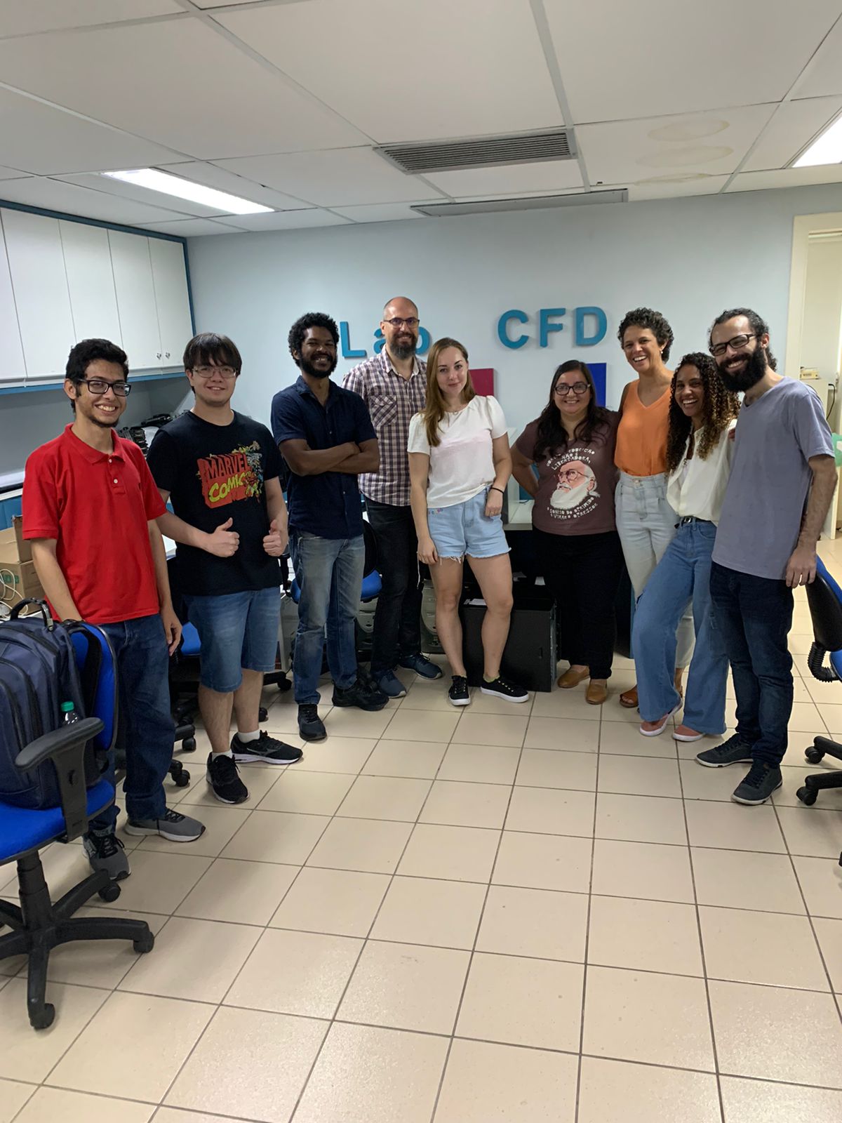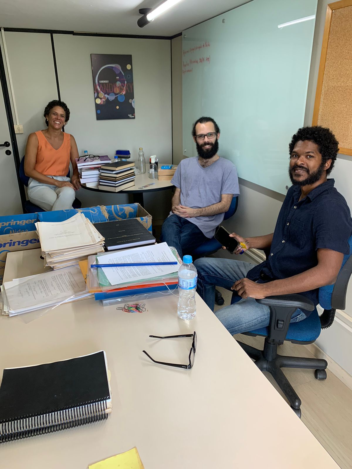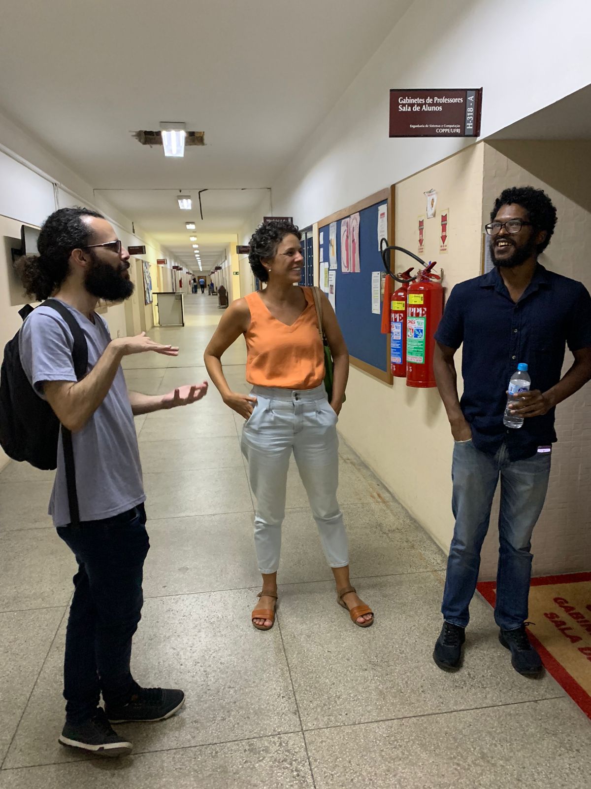 Initially, they went to his laboratory at the School of Chemistry/Escola de Química (first two photos) and then they were in his office at the PESC (last two photos).