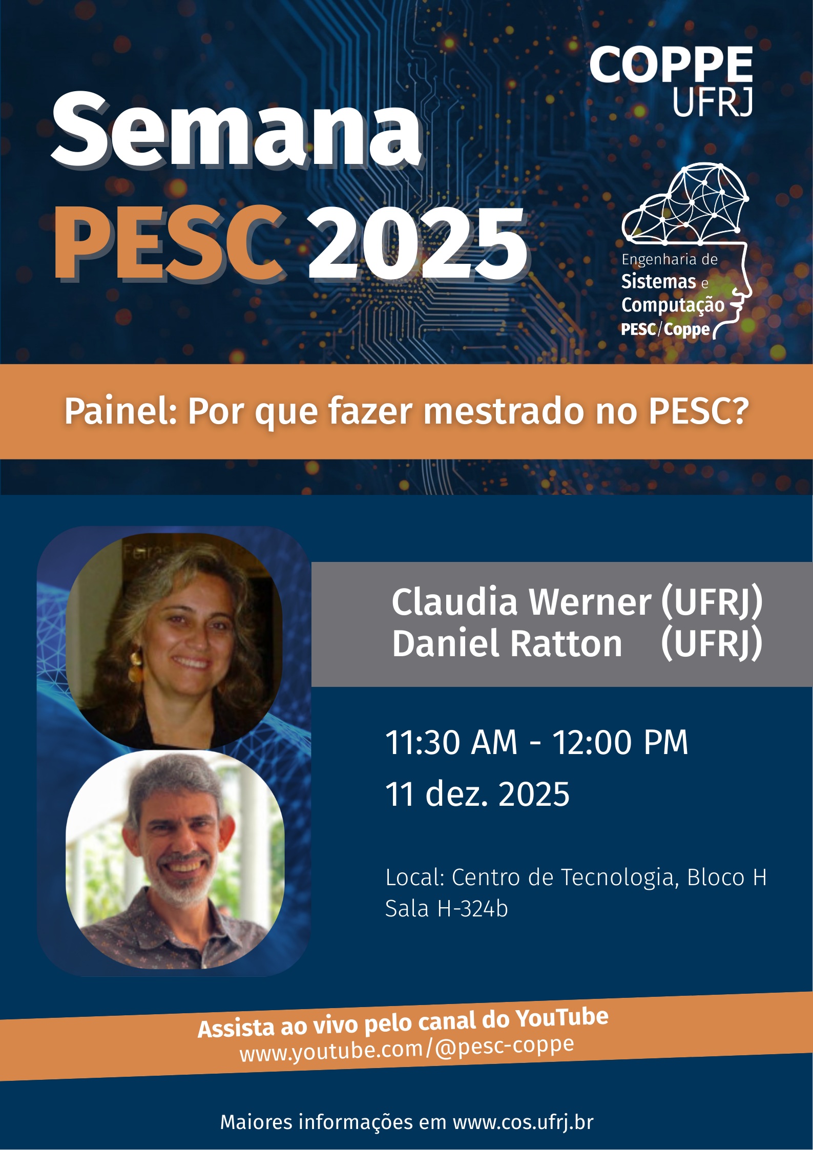 11:30 - Painel: Por que fazer mestrado no PESC? - Daniel Ratton,  Claudia Werner (Programa de Engenharia de Sistemas e Computação)