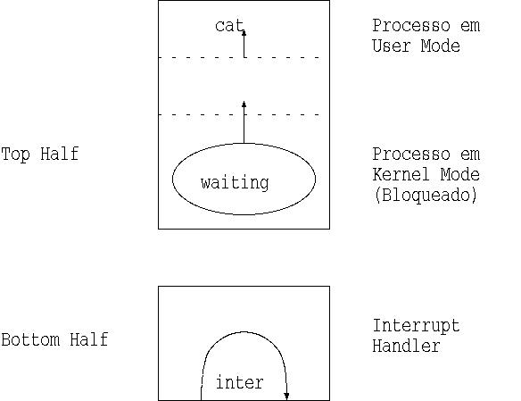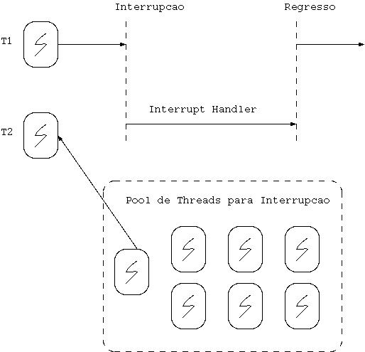 - Modelo de interrupts: uma única pilha do kernel, e o processo